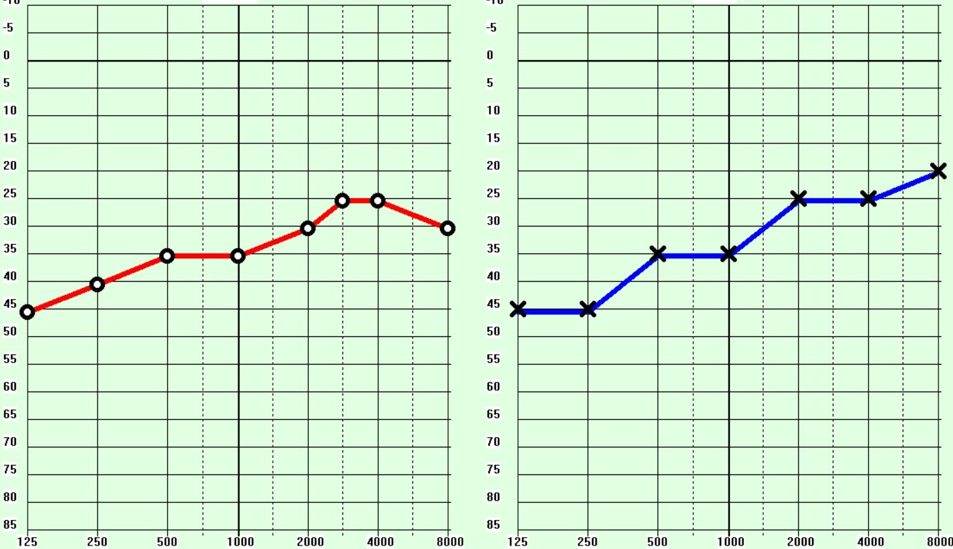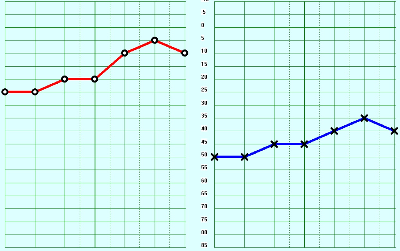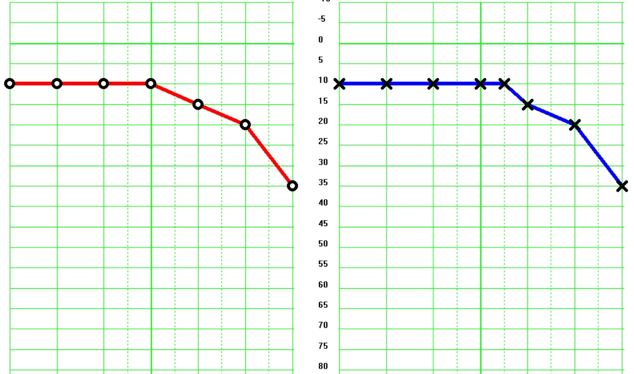 Onset of otosclerosis, hearing loss mainly on low frequencies
